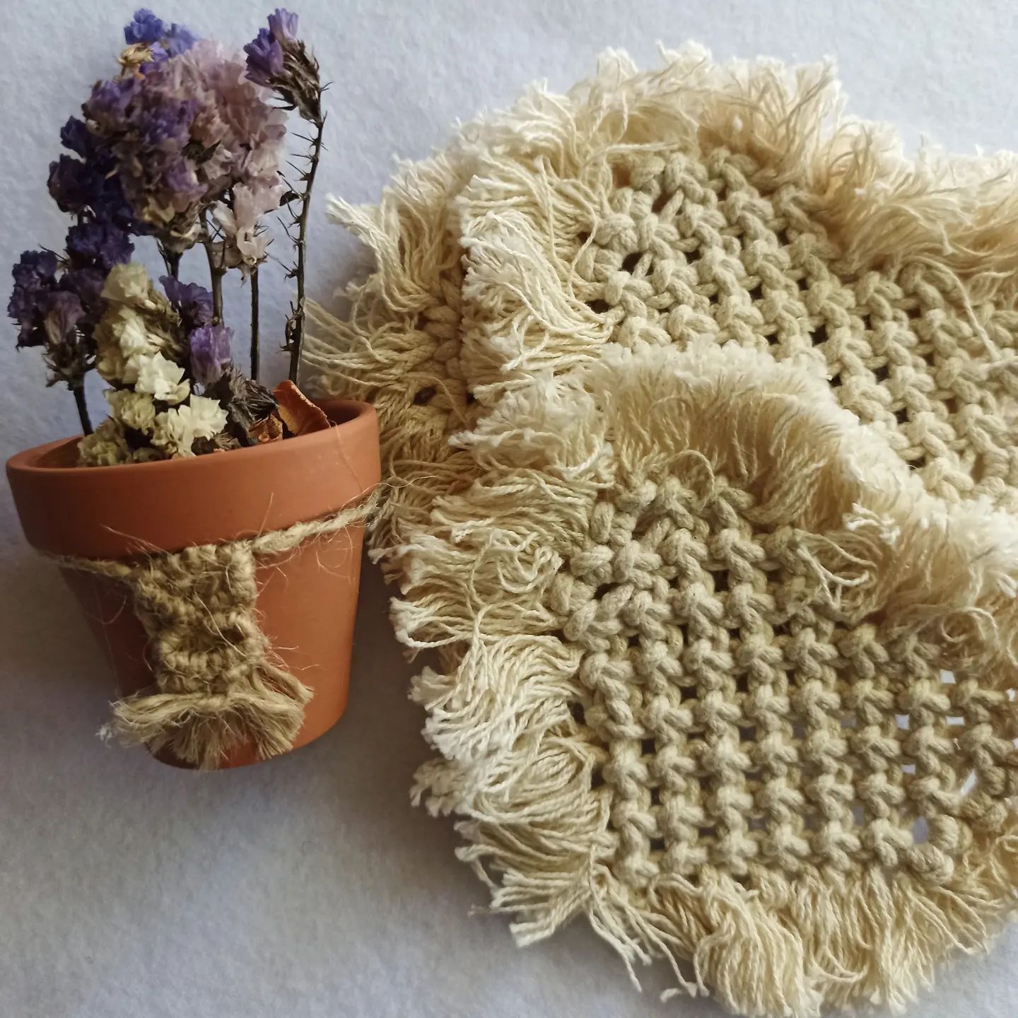 Productos elaborados a mano con la técnica Macramé.